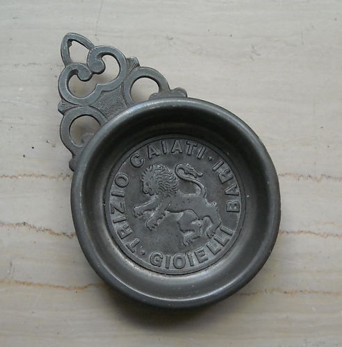 CHIAPPINIVINICLASSICI DEL GARDAMONIGADEL GARDA... Interessante soprammobile pubblicitario,grazioso piattino, con raffigurato un frammento di pagina di giornale, con l'intestazionerelativa ...