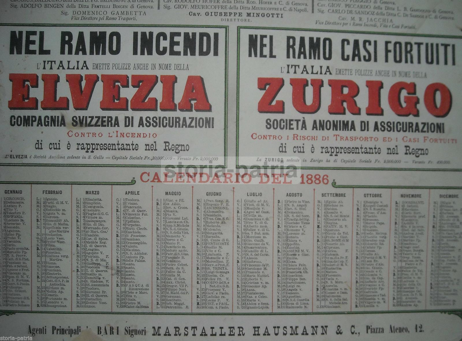 Puglia, Bari, Marstaller Hausmann, Assicurazioni, Elvezia, Zurigo, Italia, Genova, 1886