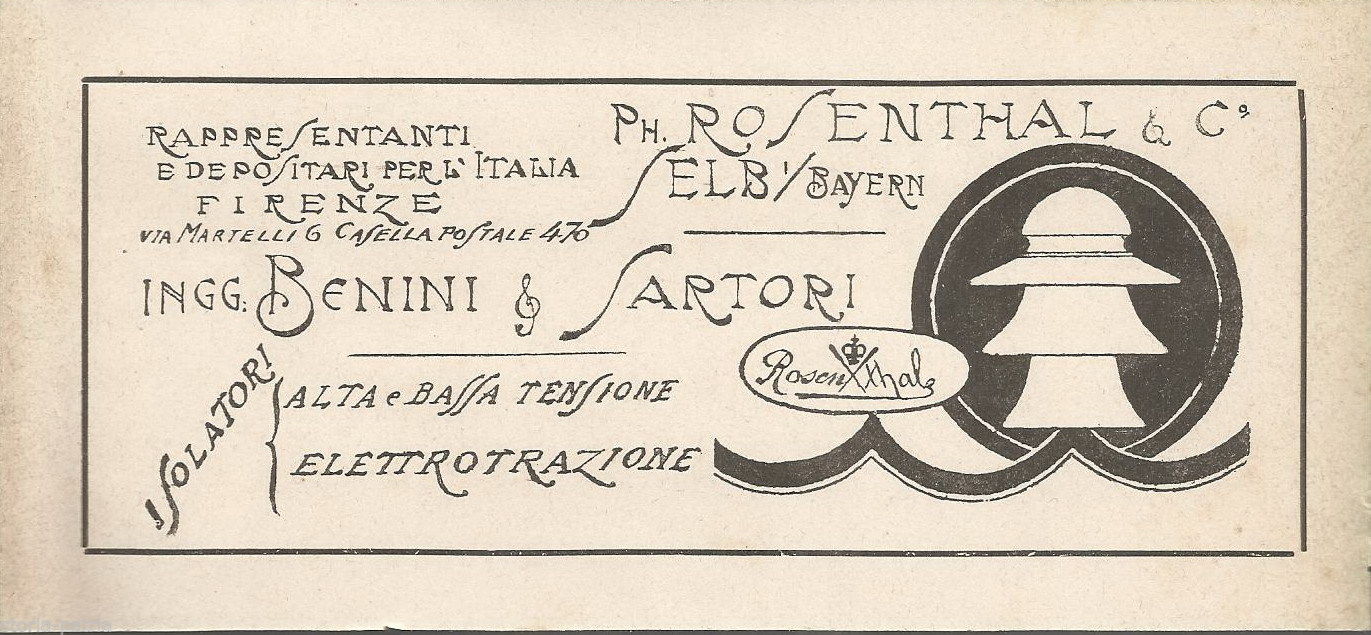Toscana, Firenze, Benini E Sartori, Elettricita, Isolatori Elettrici, Rosenthal, 1922