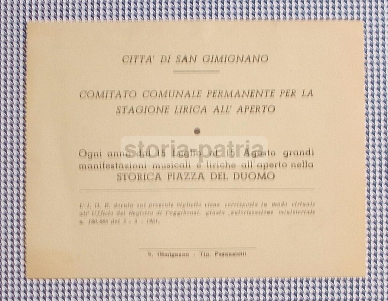 Toscana, S Gimignano, Musei Cittadini, Biglietto Pubblicitario d'Epoca, Pubblicita